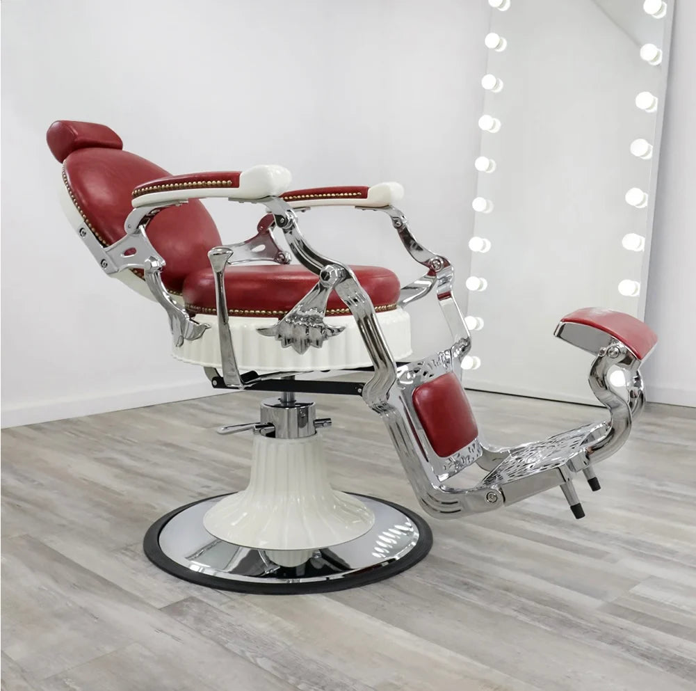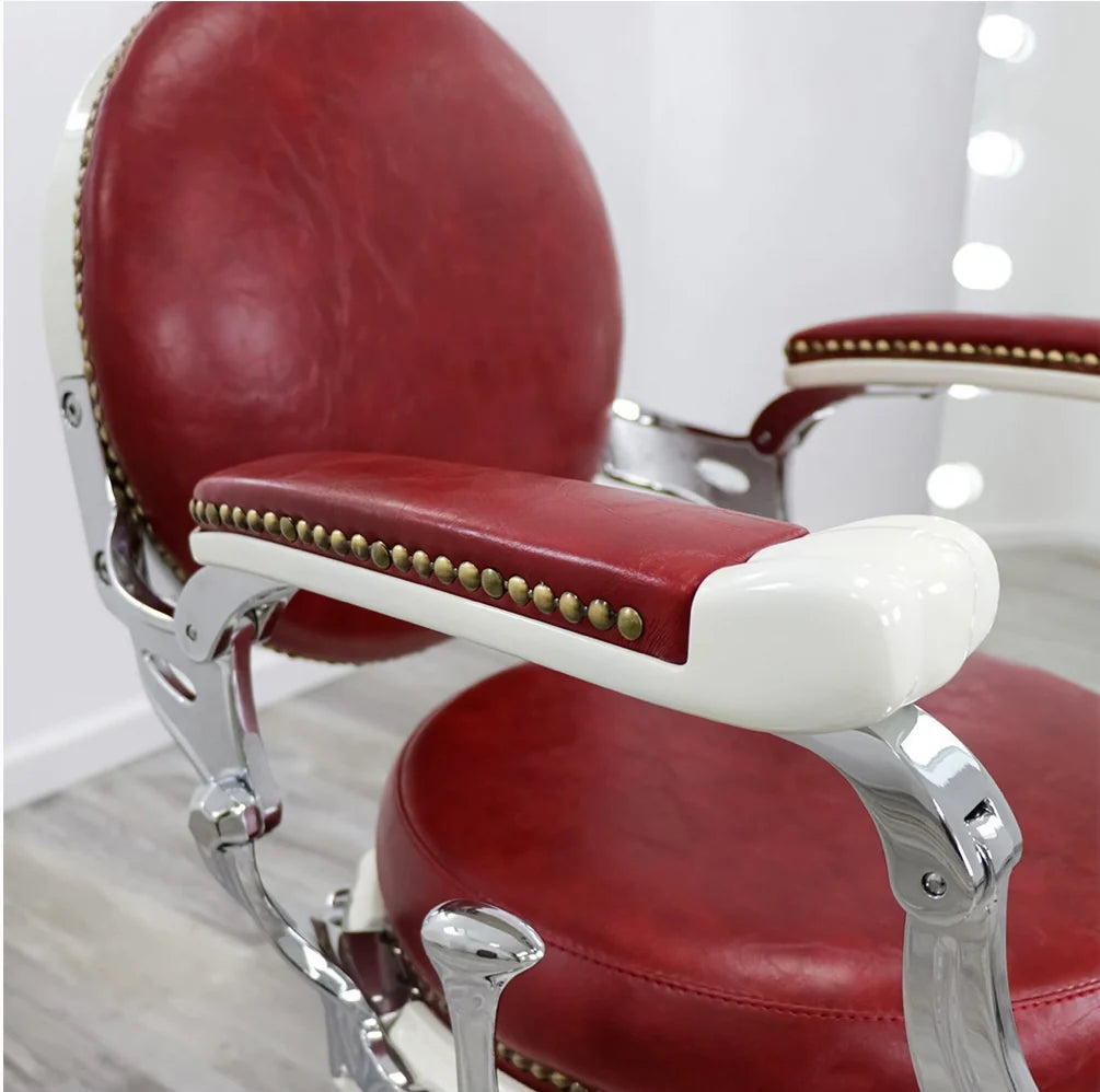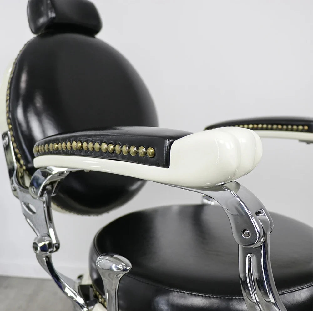 The Emerson Barber Chair will build an environment of individuality in your barbershop, salon, or any beauty business. For a classically inspired look with a modern twist, furnish your business with this professional reclining barbershop chair.
