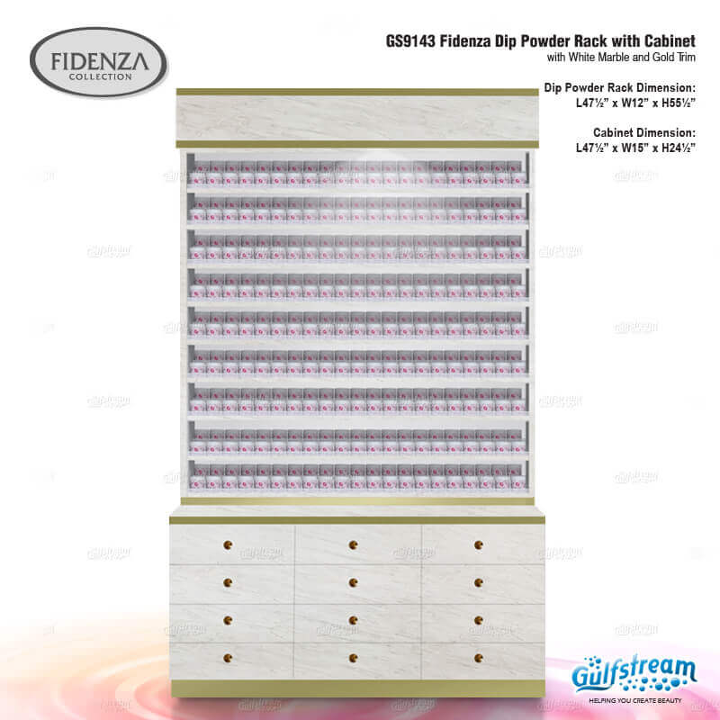 Dip Powder Rack Dimension: L47½” x W12” x H55½”Cabinet Dimension: L47½” x W15” x H24½”