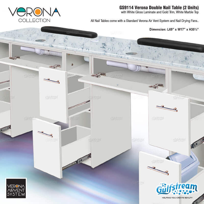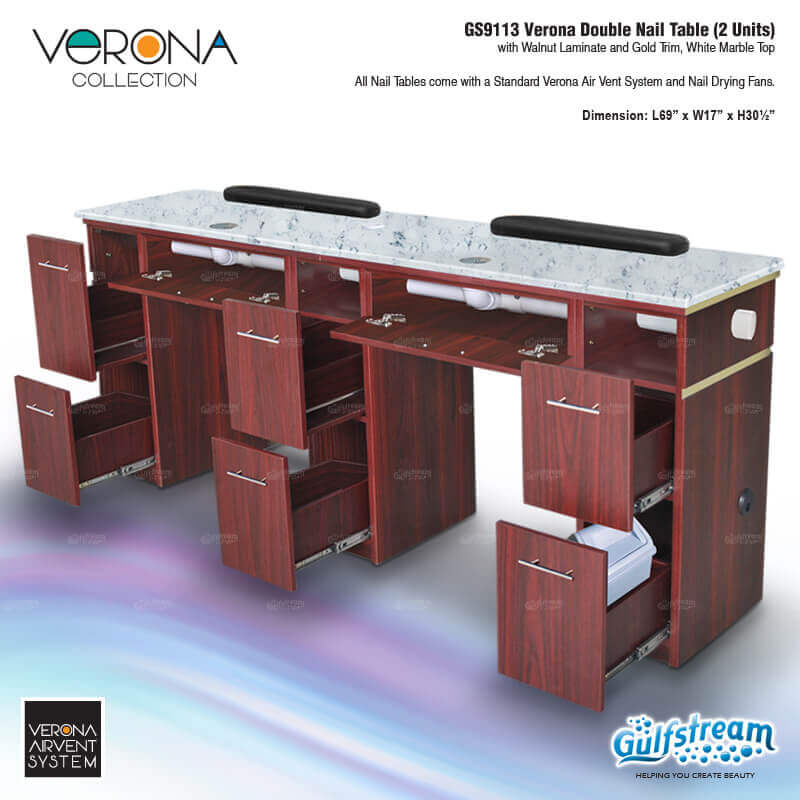 All Nail Tables come with a Standard Verona Air Vent System and Nail Drying Fans.