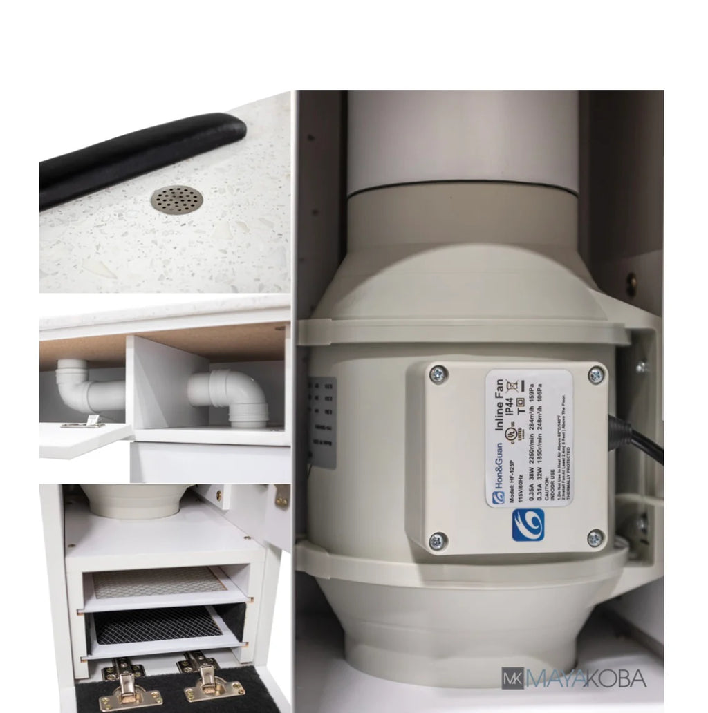 The ultimate solution for nail salons and spas - our new NAPA Manicure Table with a built-in vent system! Say goodbye to unpleasant smells and hello to fresh, clean air. With a powerful 250 CFM strength and the ability to remove odors from 200 ft2 of space, the NAPA manicure table is the perfect addition to any salon. Keep your workspace clean and inviting for your clients while you work in comfort with our built-in vent system. Upgrade your salon today and see the difference clean air can make!