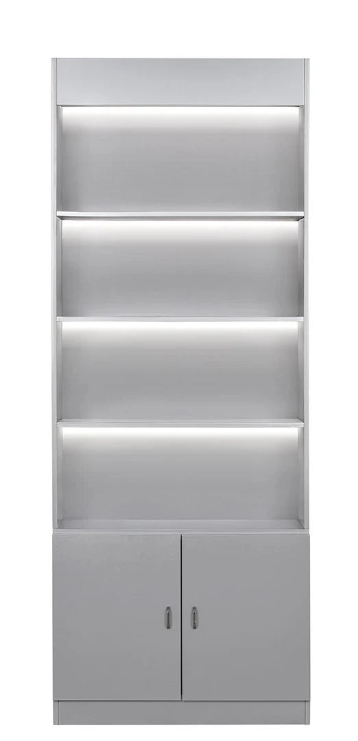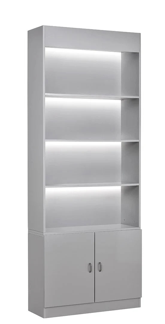 Our free-standing retail display showcase has ample space to display products to your clients with extra closed cabinets below and LED Lighting.