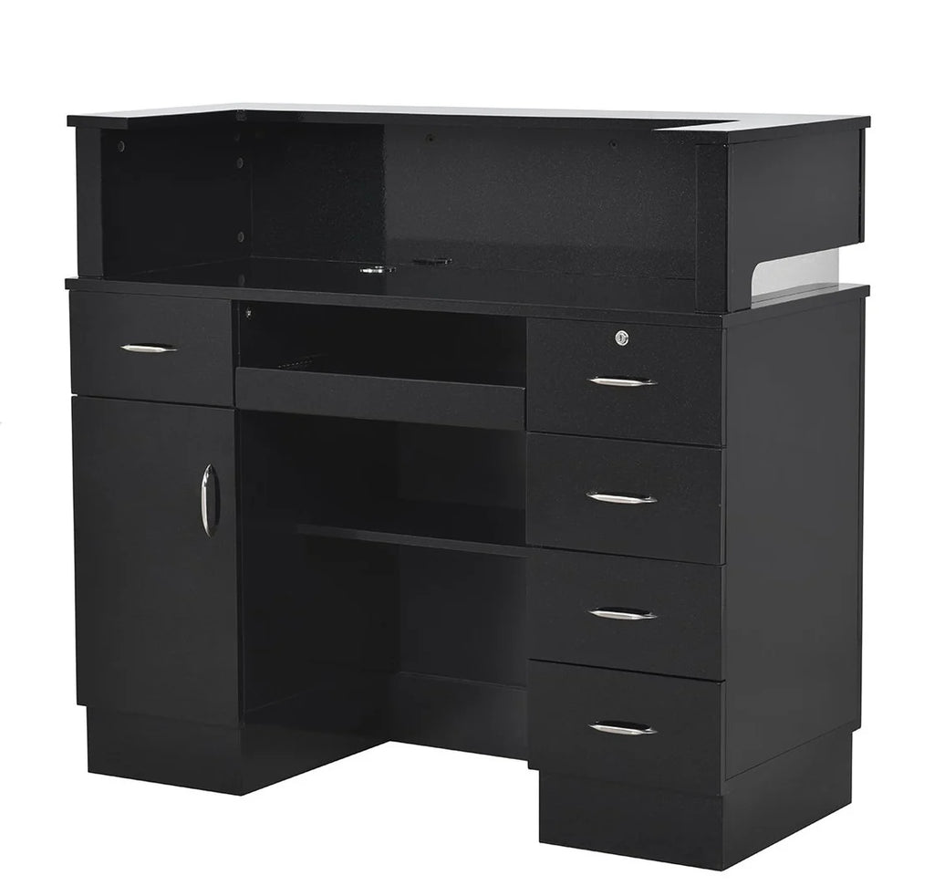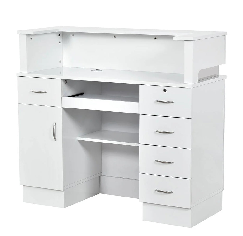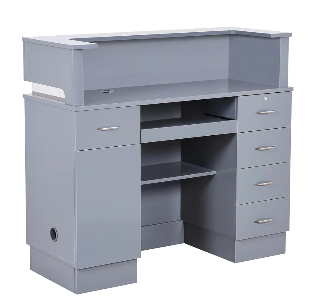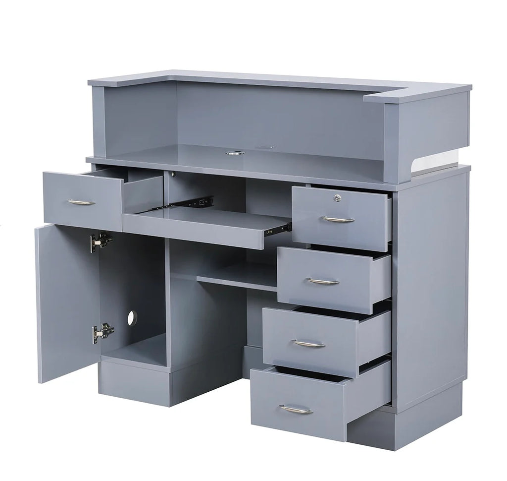 Simplicity is the key to designing a sleek and modern reception area, and the Langara LED Modern Salon Reception Desk should be the focal point of this design. If you’re looking for a versatile retail reception counter that can fit in any space, the Langara is a standing height reception desk equipped with spacious cabinets and drawers, providing ample storage space for administrative work. This medical office reception desk also has a keyboard slide-out and a counter so receptionists can work with ease. Find the perfect reception desk for your salon today!