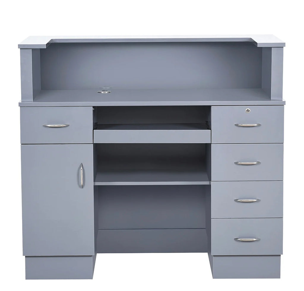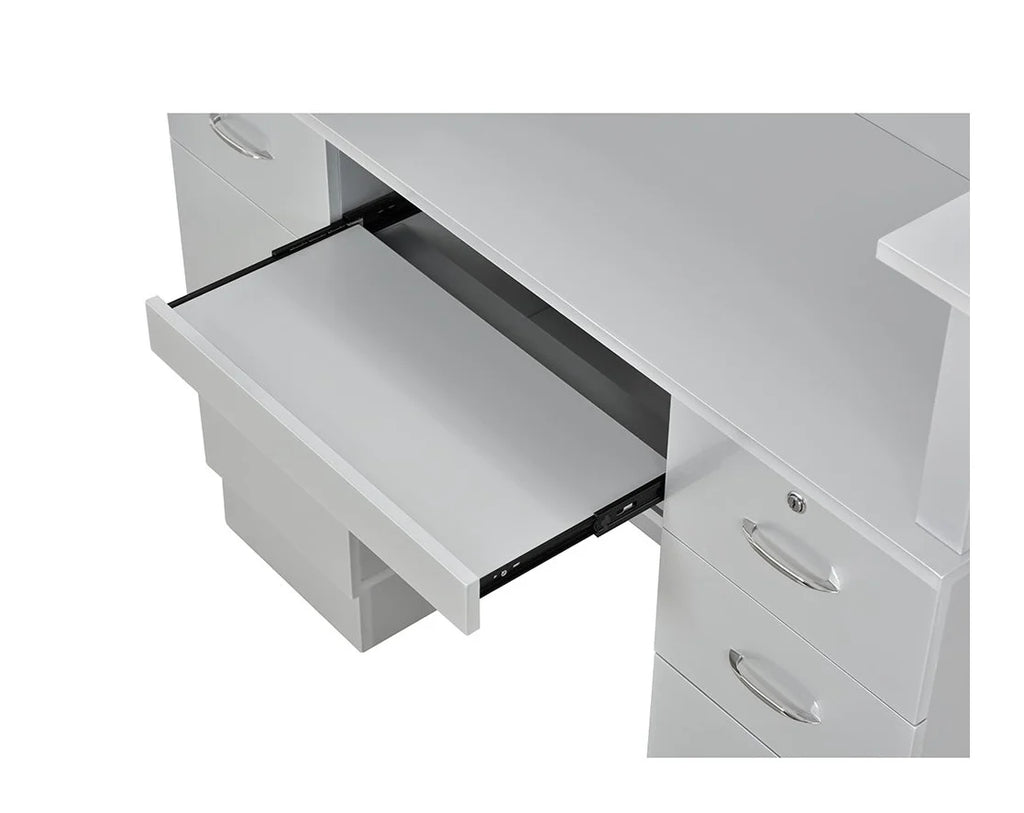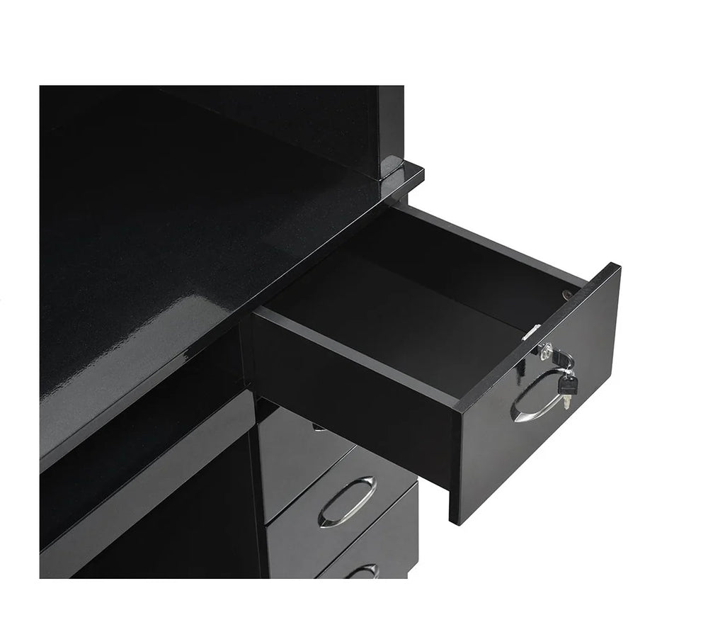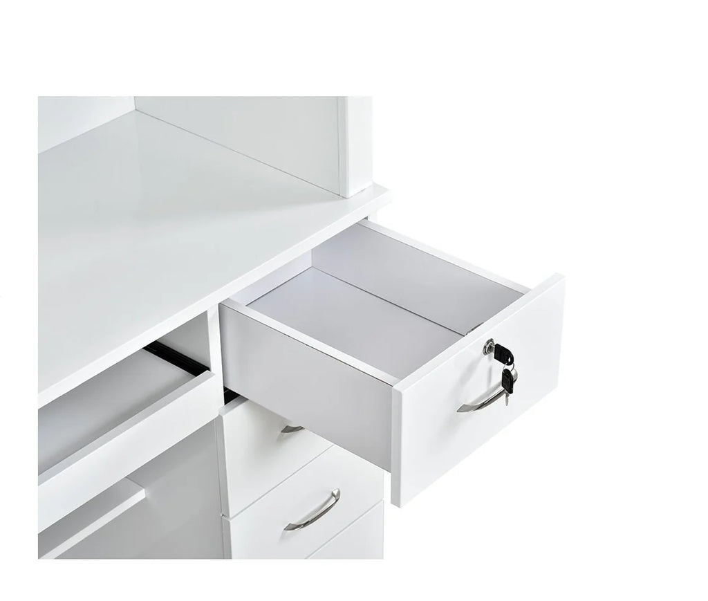 Simplicity is the key to designing a sleek and modern reception area, and the Langara LED Modern Salon Reception Desk should be the focal point of this design. If you’re looking for a versatile retail reception counter that can fit in any space, the Langara is a standing height reception desk equipped with spacious cabinets and drawers, providing ample storage space for administrative work. This medical office reception desk also has a keyboard slide-out and a counter so receptionists can work with ease. Find the perfect reception desk for your salon today!
