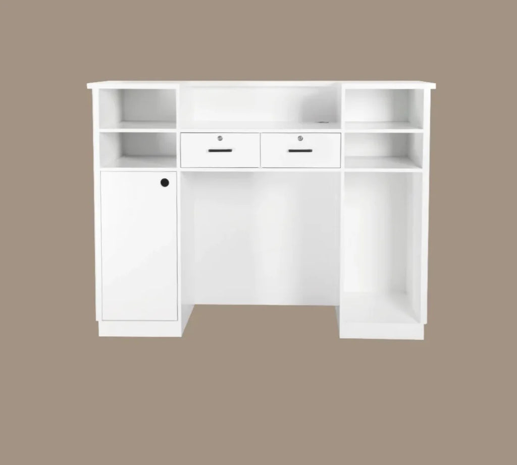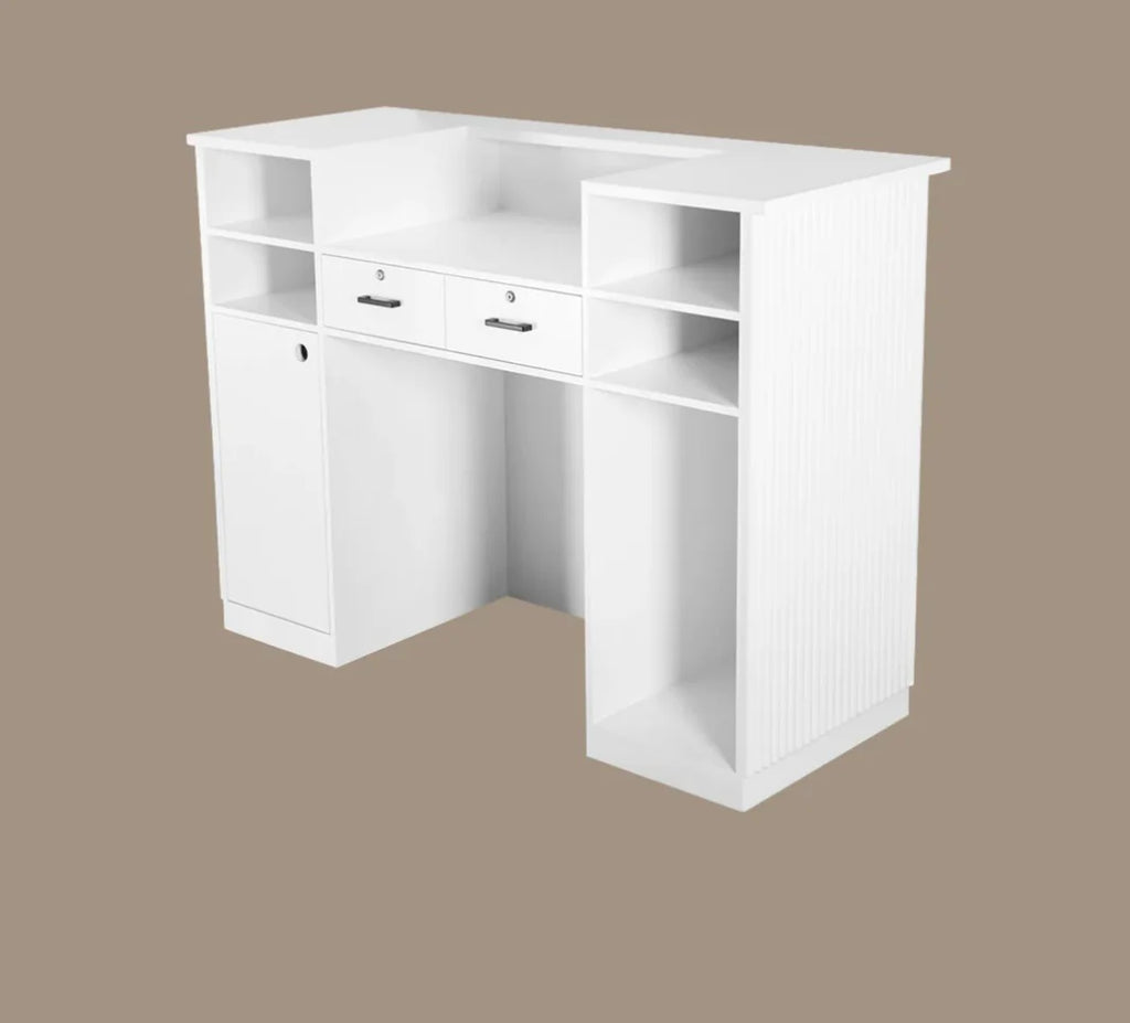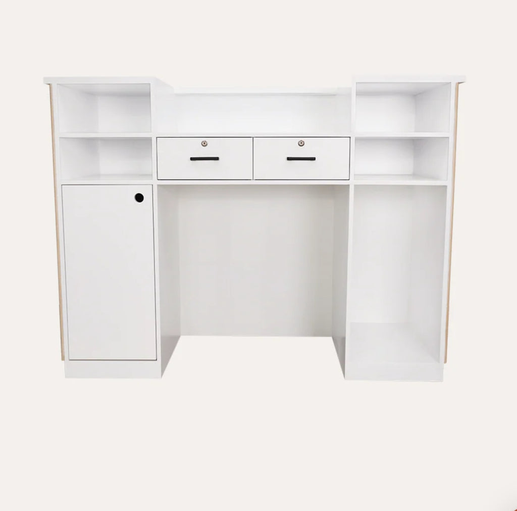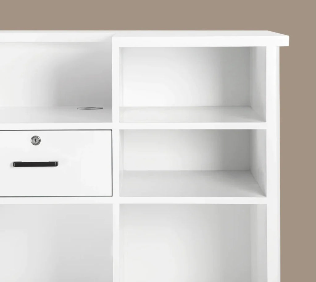 The Nouveau Tambour line evokes mid-century modern design with nods to the natural, clean elements of modern furniture. A welcome sight in any reception area, you’ll have both form and function with ample desk area and storage space. The larger version of this desk features additional cubby storage and workspace area.
