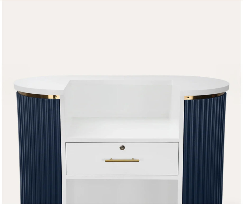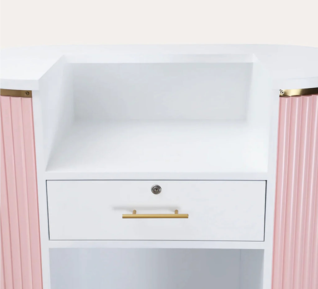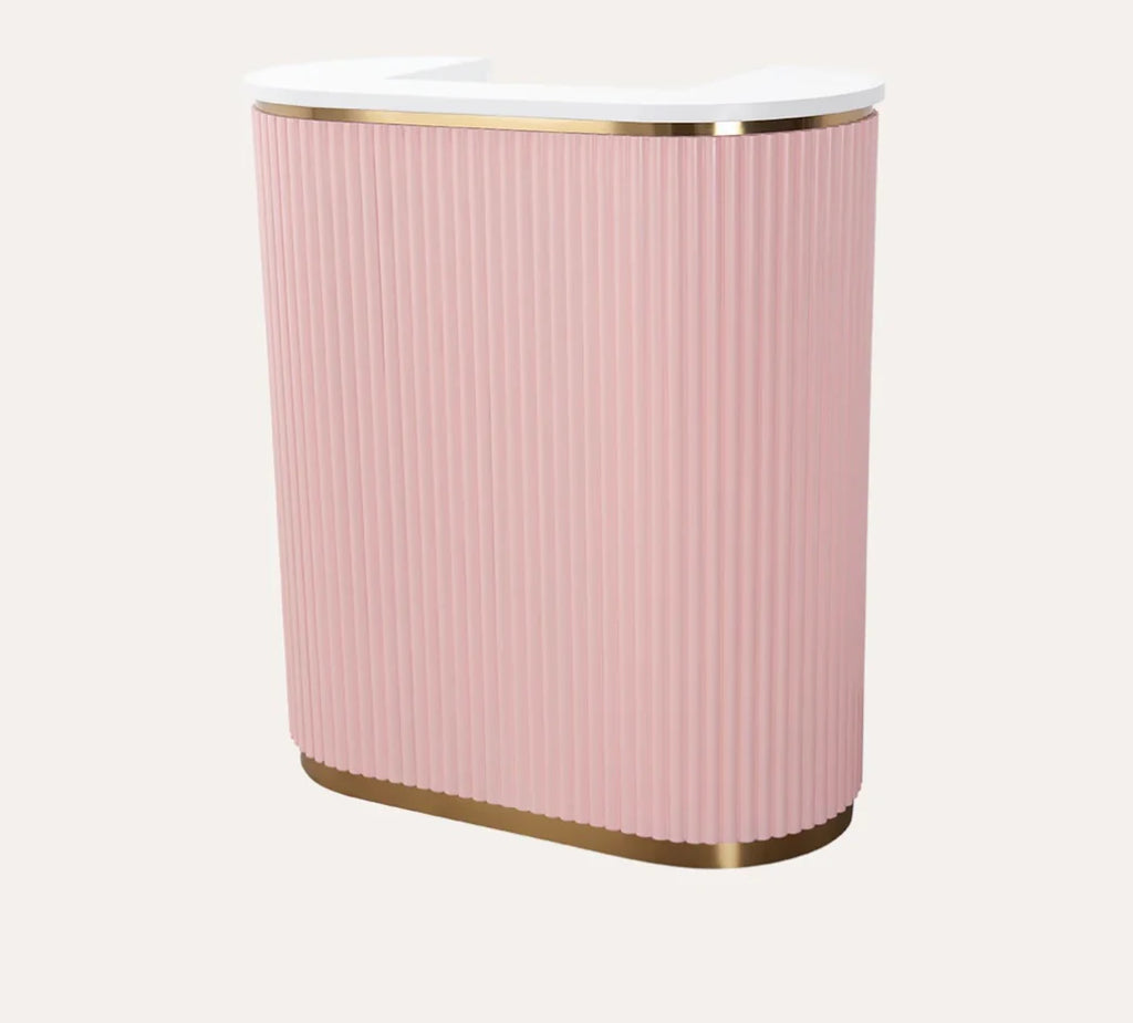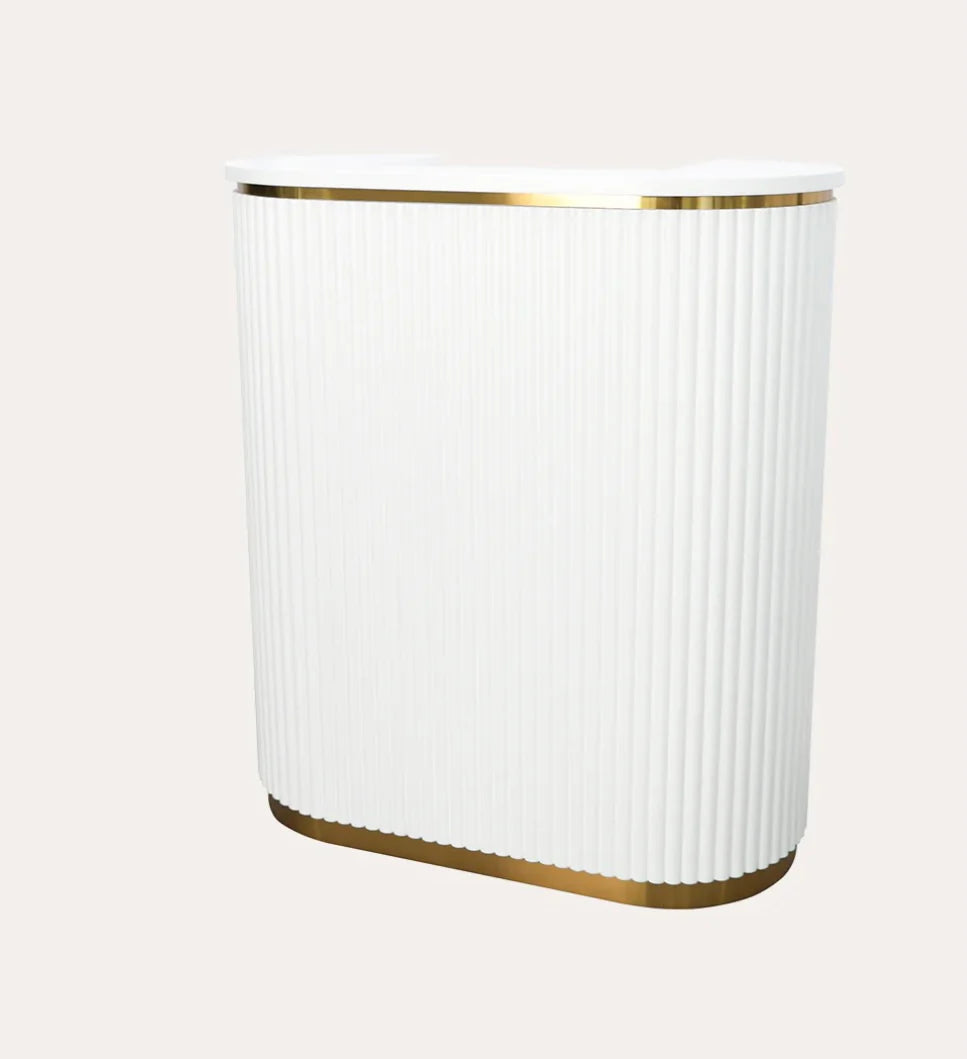 The most popular Rene Reception Desk is now available in a Petite size. The vintage inspired piece is the perfect way to invite clients into your space. Soft lines, neutral tones and construction round out any entry way space salon reception to hostess stand, the smaller size is perfect to fit more narrower spaces.