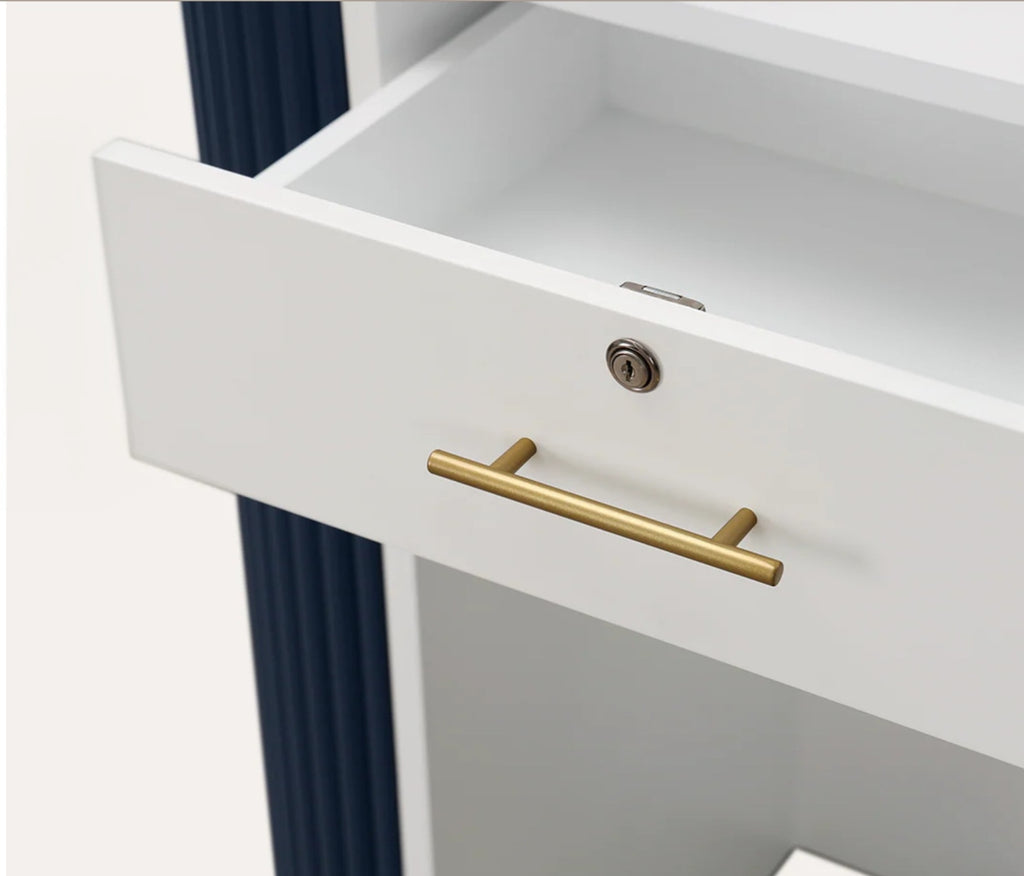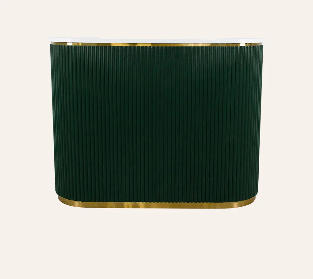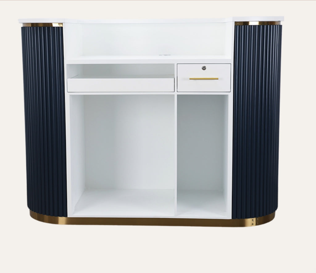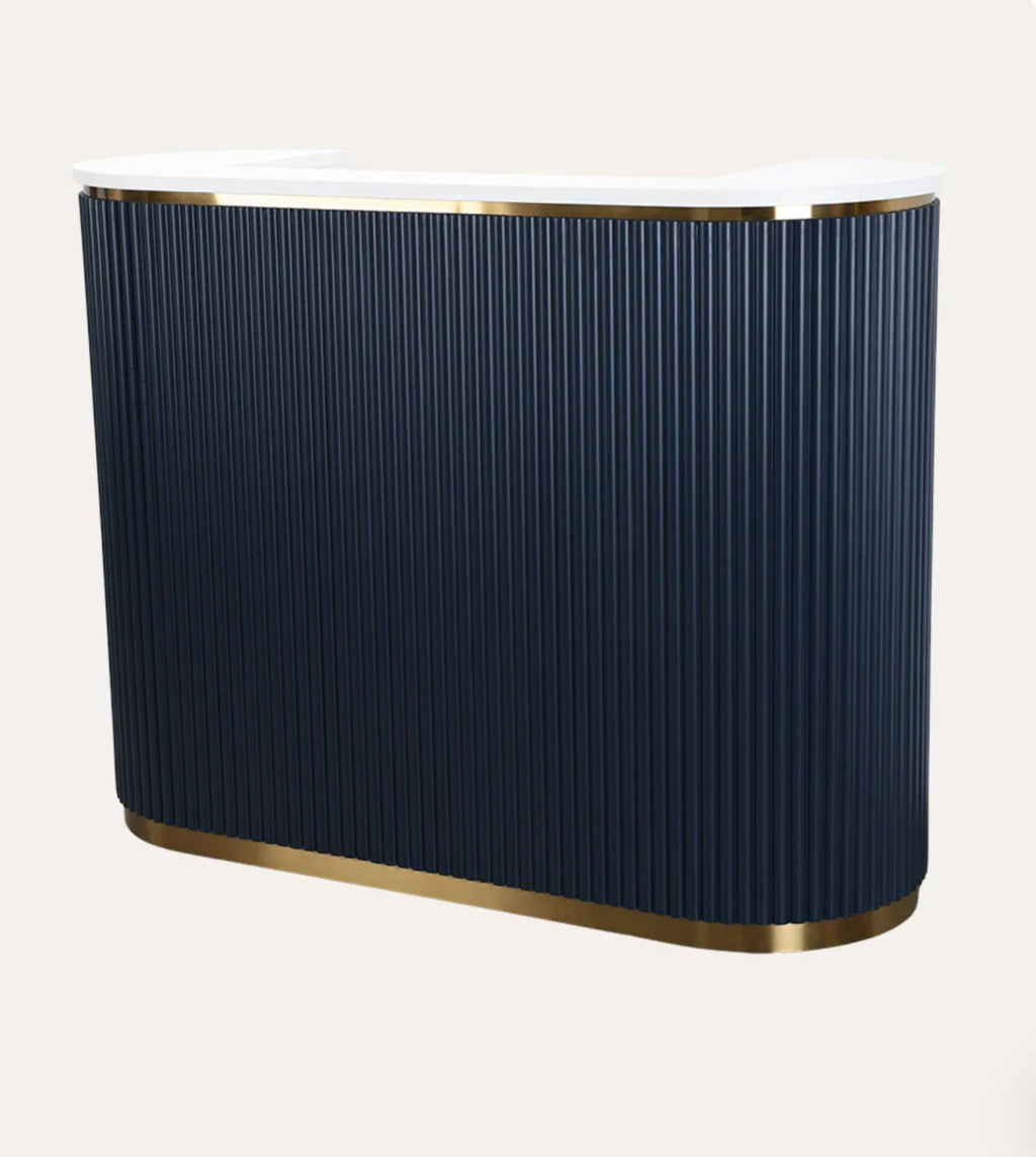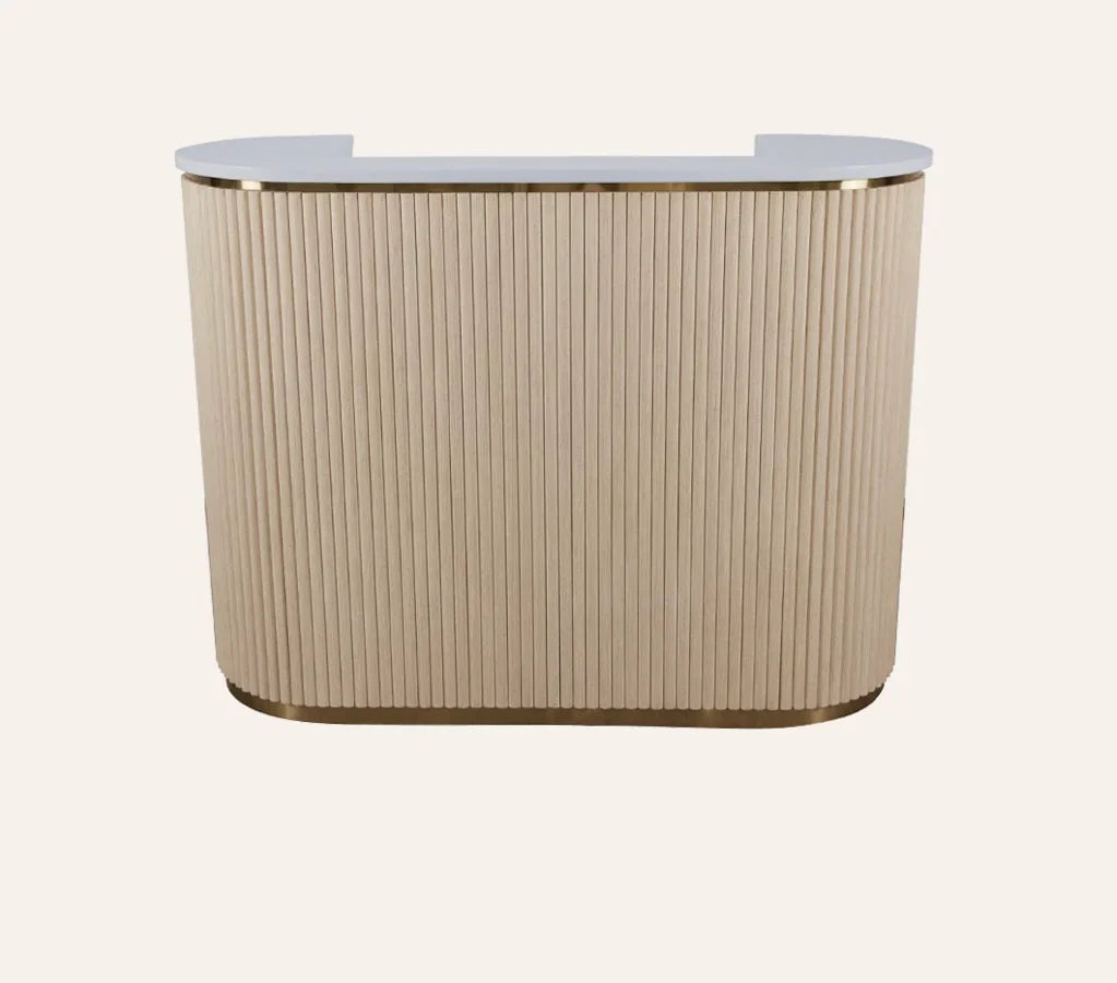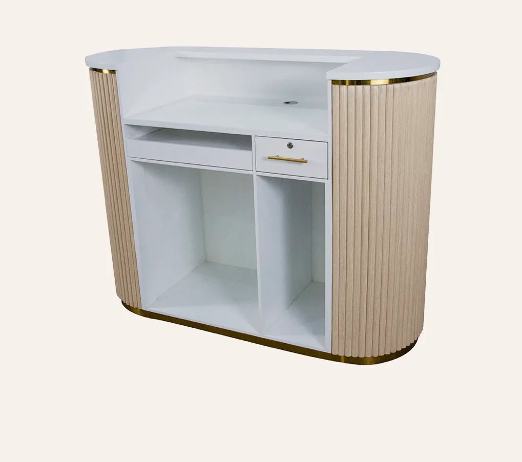Greet your customers with a warm hello and our new RENE Reception Desk. This retro reception desk gleams with classic, feminine features leaving a lasting impression on your guests. Let the RENE Reception Desk be your salon statement piece!