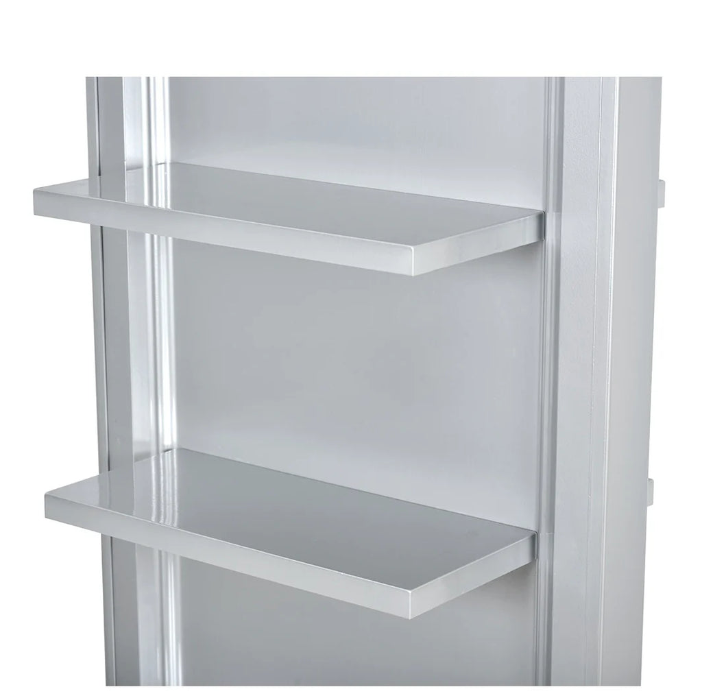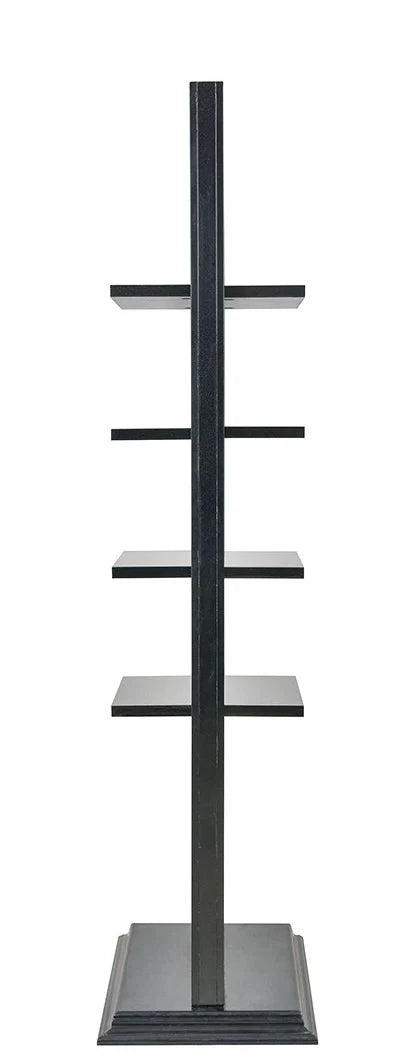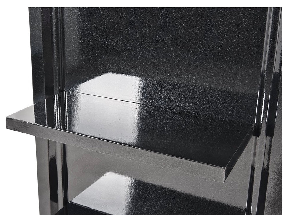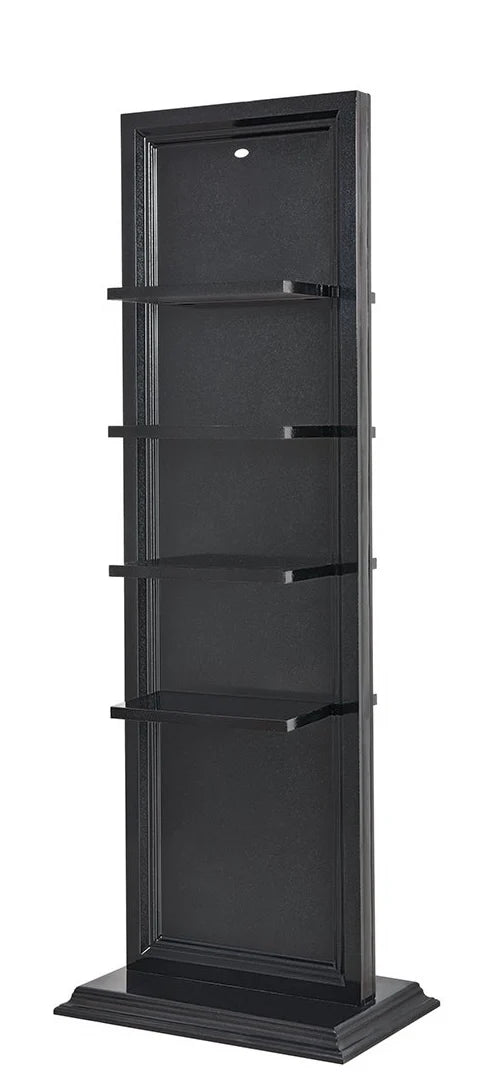 The Gondola double retail display shelf offers plenty of retail display shelf space in a small footprint. With its glossy black exterior and a large base for stable free standing, the Gondola double retail display shelf fits right in with a variety of salon and retail environments.