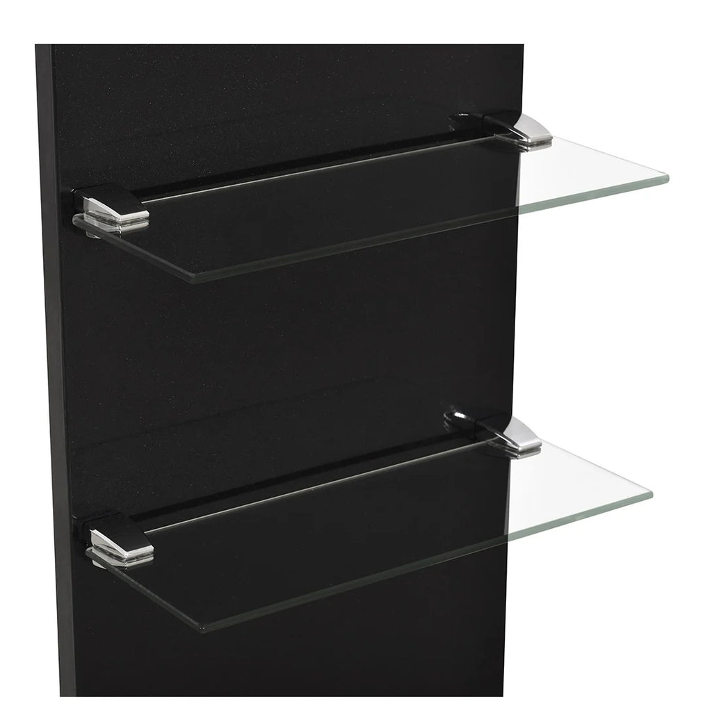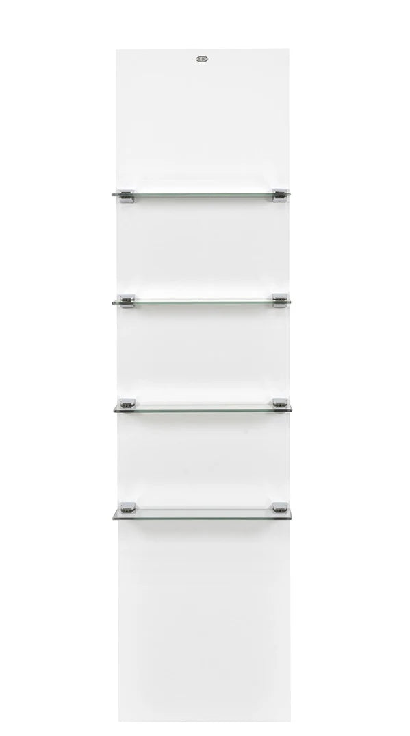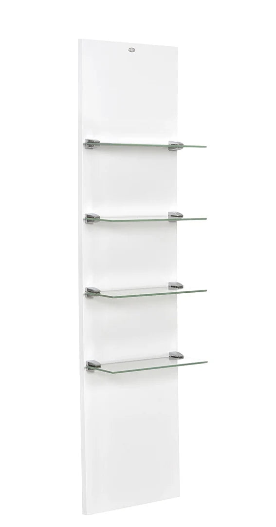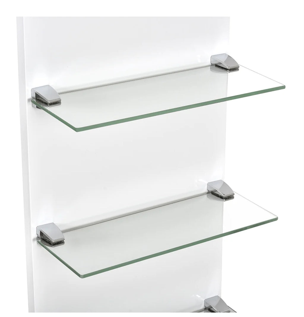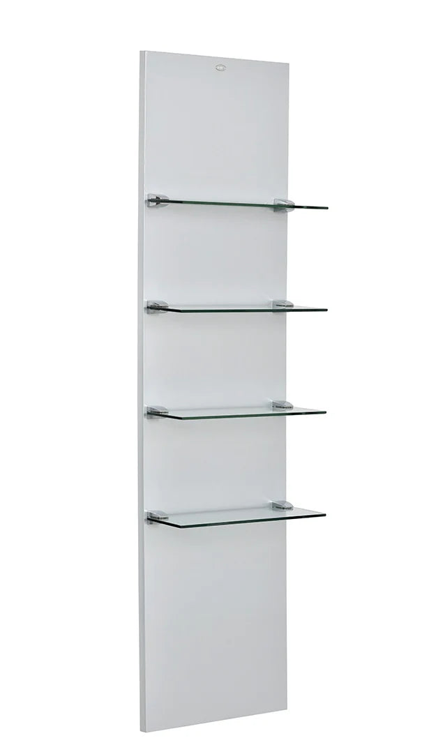 The Vina wall mounted Display shelf is made to function to any wall space and also made to fit next to styling units with a simple but elegant Design with frosted glass shelving to bring the viewers attention straight to the products added to each shelve.