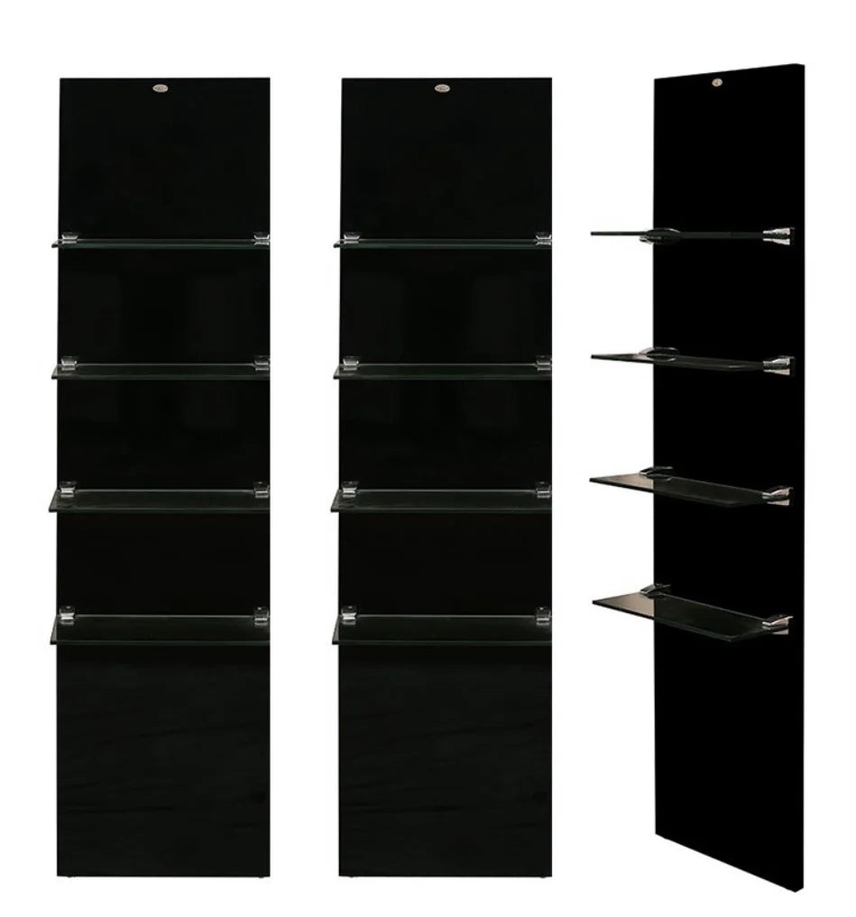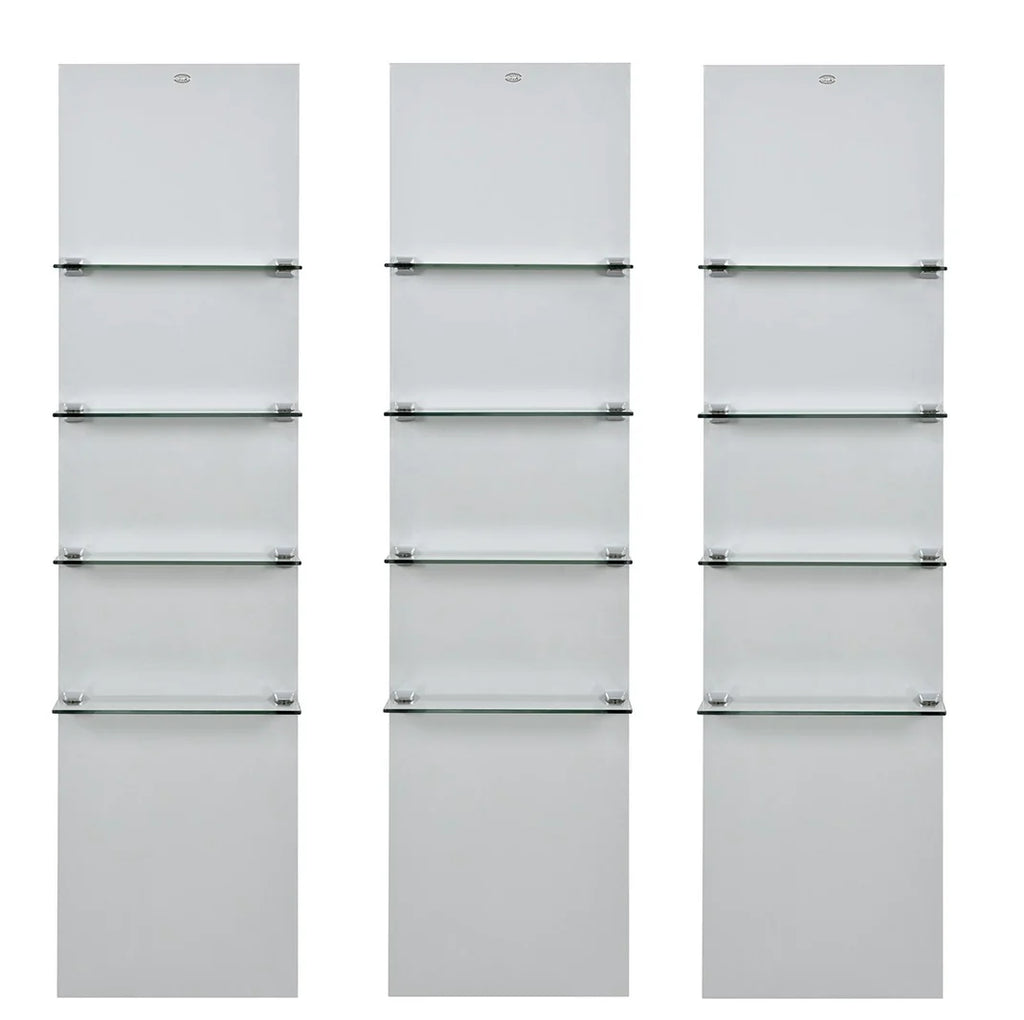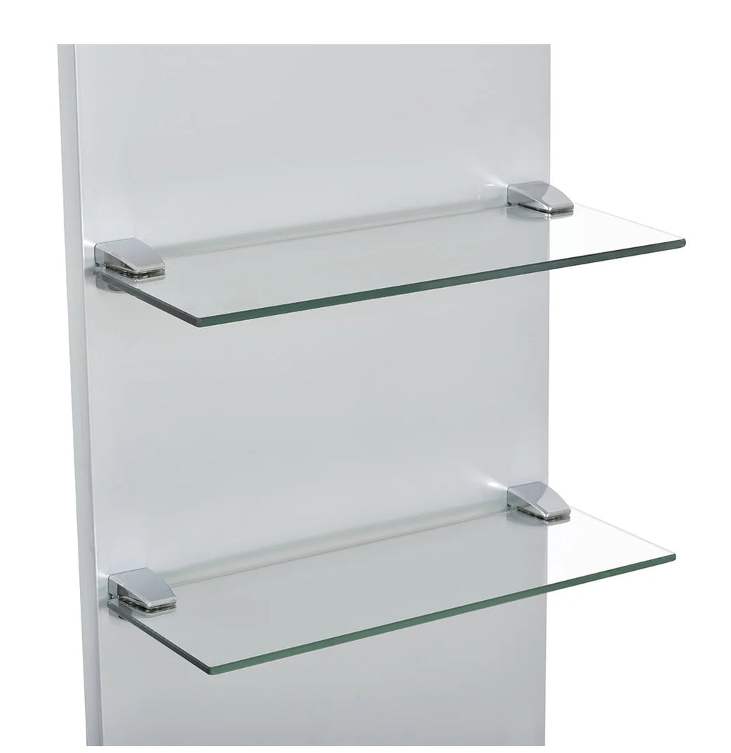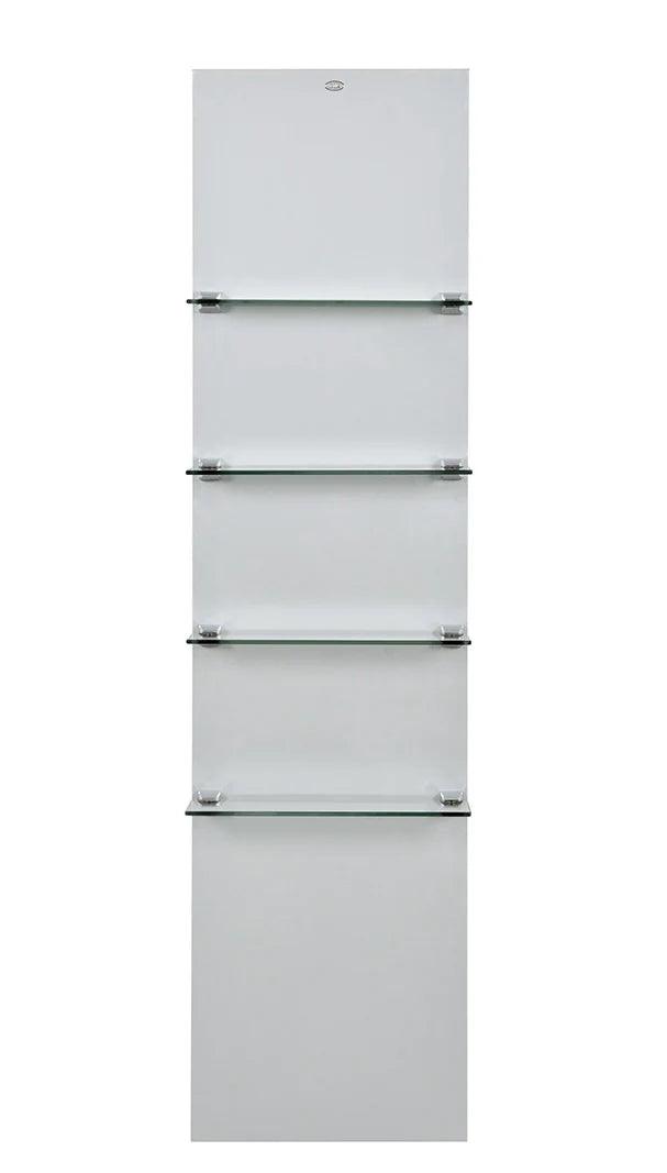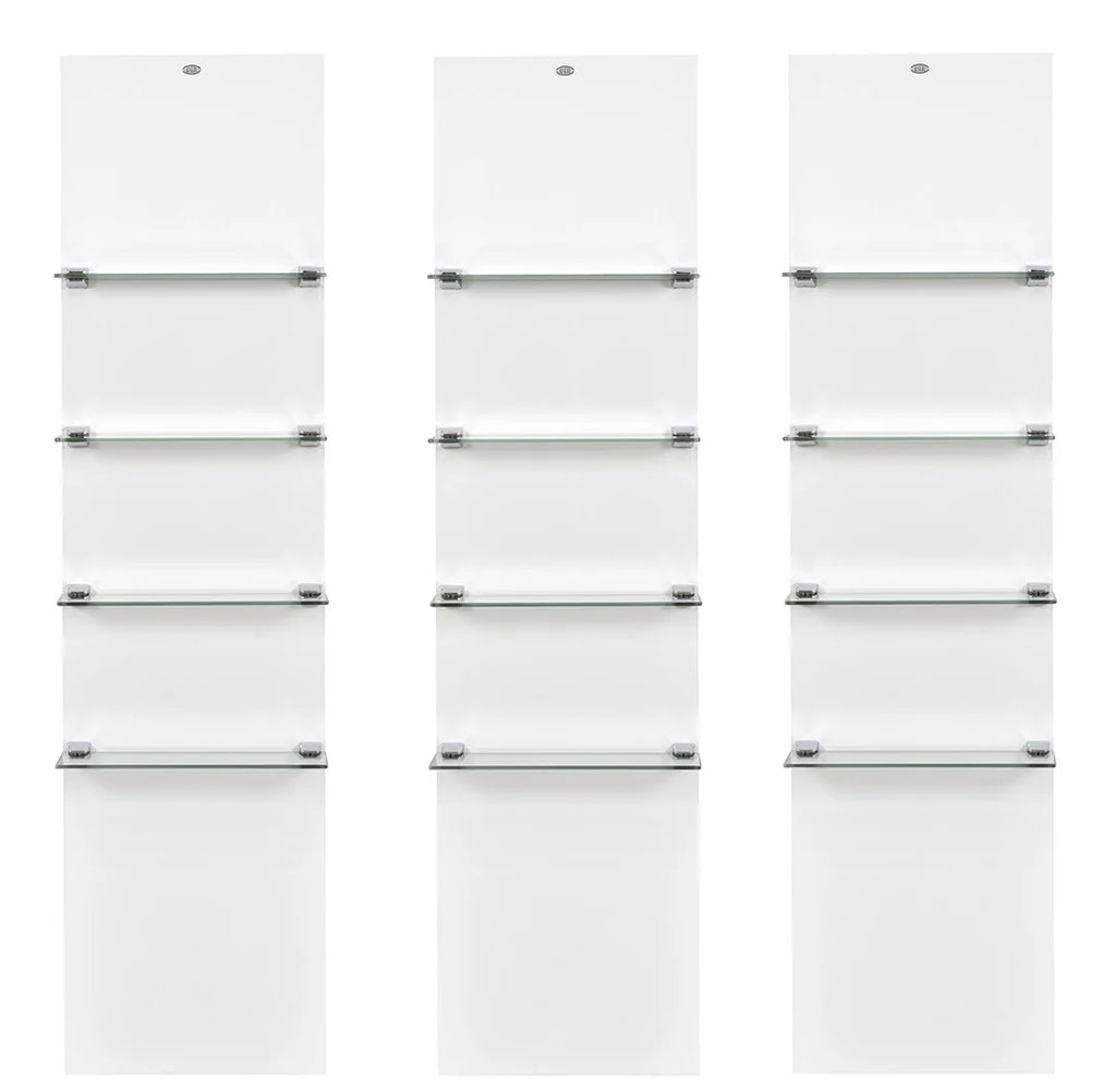 The Vina wall mounted Display shelf is made to function to any wall space and also made to fit next to styling units with a simple but elegant Design with frosted glass shelving to bring the viewers attention straight to the products added to each shelve.