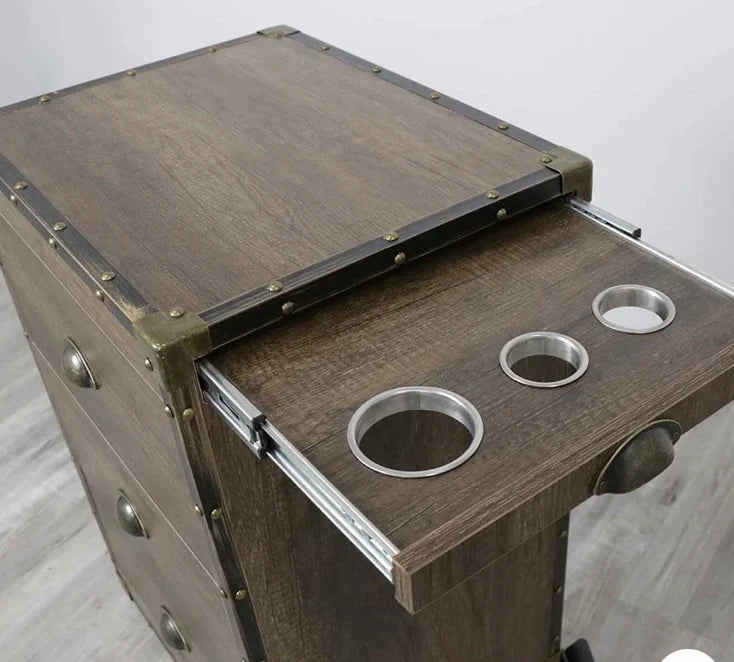 The Portable Artisan Styling Station enhances your shop with convenience and natural charm. Portable salon stations offer space - saving storage while providing access to hair tools at an arm's reach away. Featuring admirable rustic design elements, this transportable salon station is ideal for any beauty or barbershop looking to emphasis an earthy layout