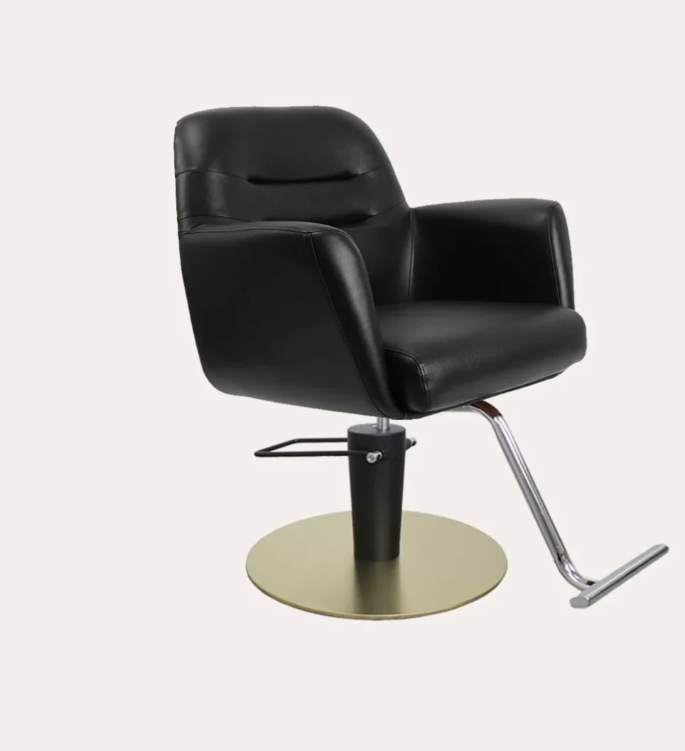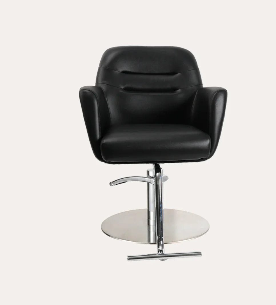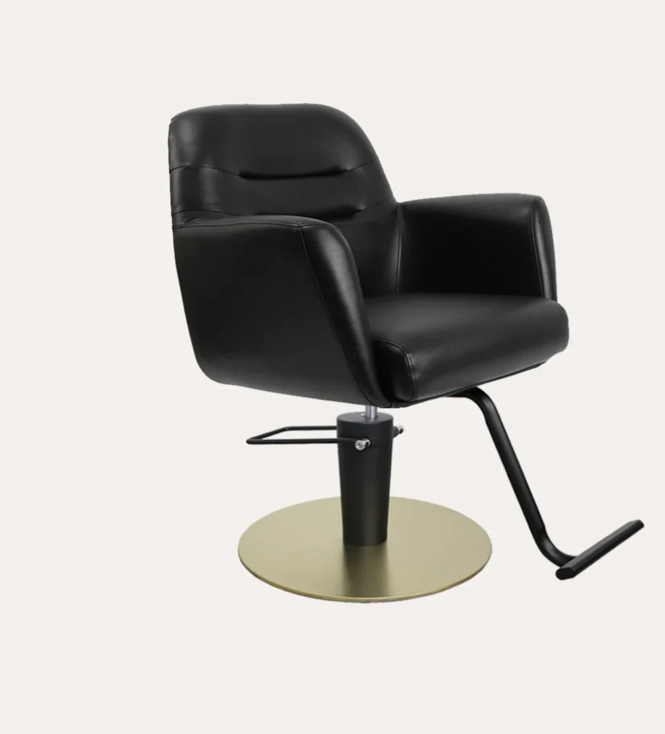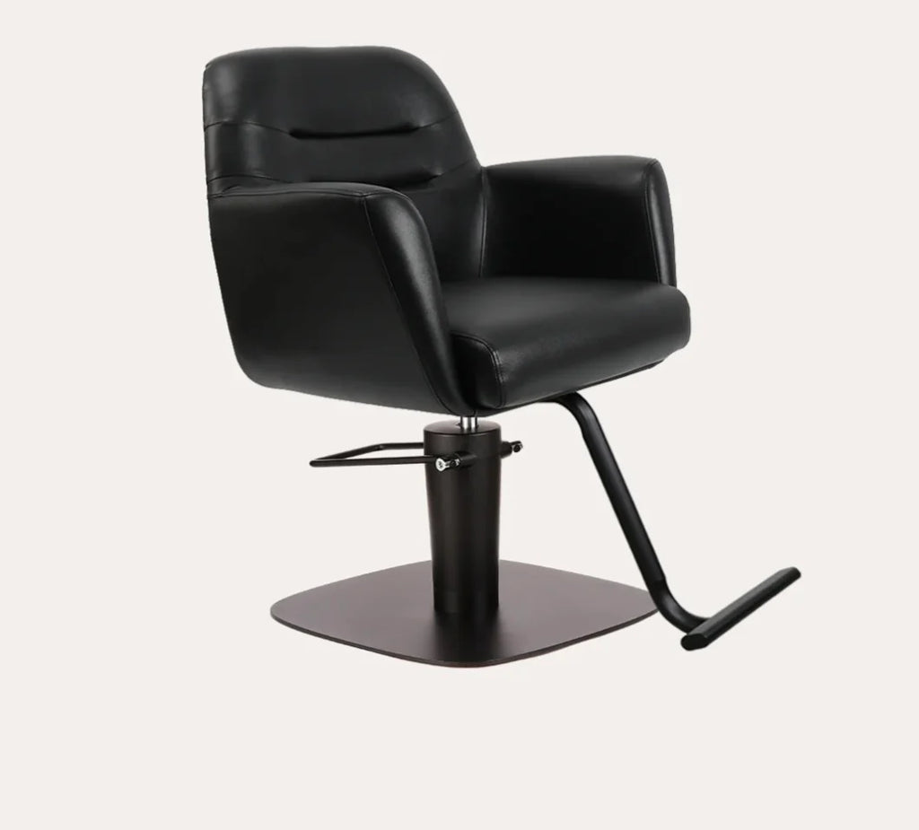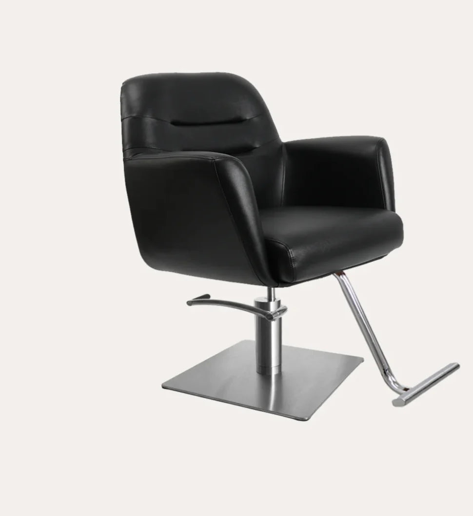 The Gemma salon chair elicits a balance of comfort and style featuring cushioned arm rests, back and seat. The soft feel and firm support of this chair creates a relaxing experience for any client.