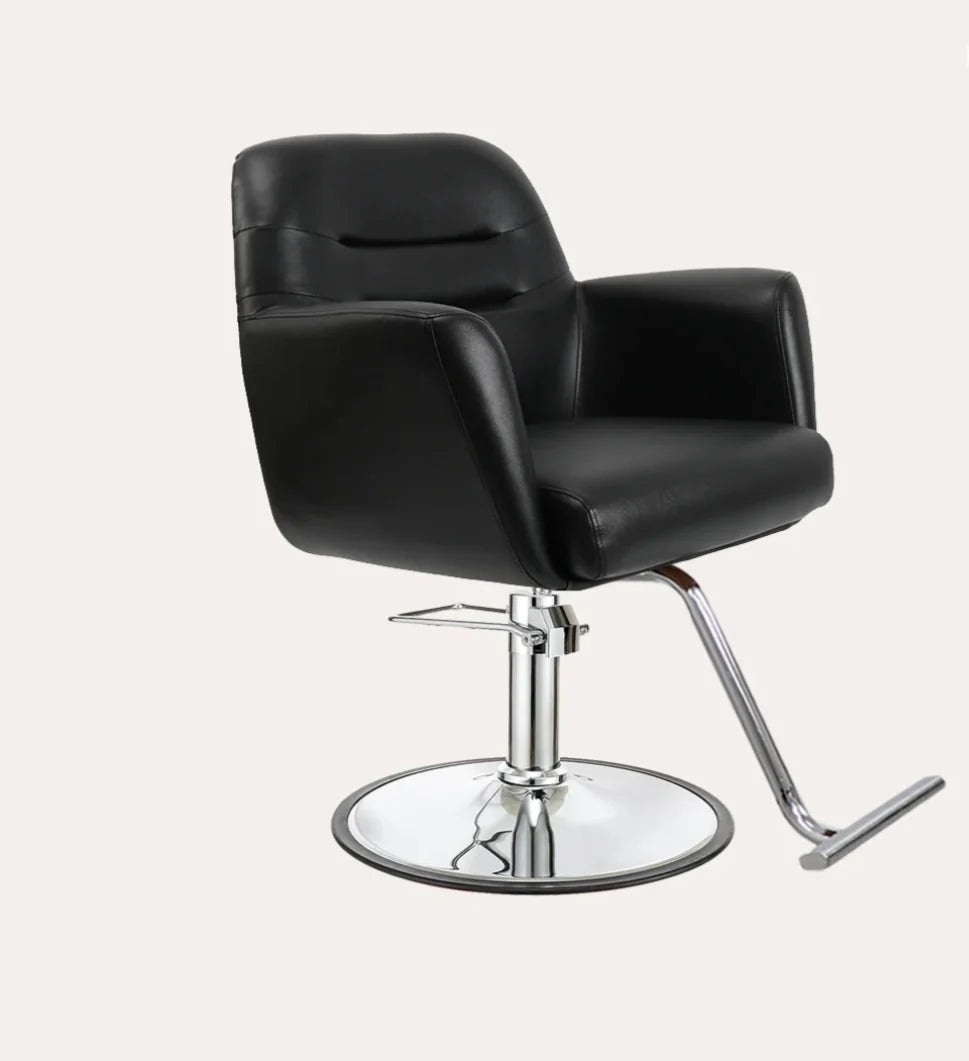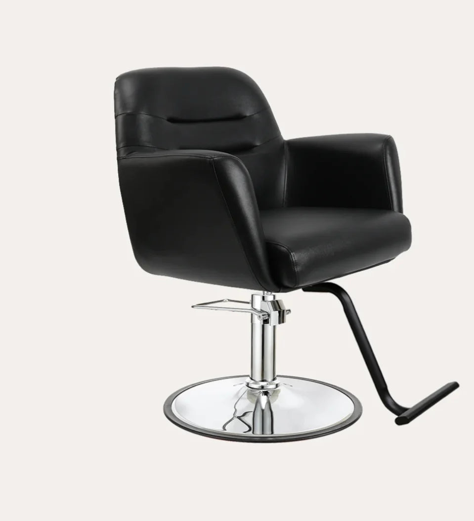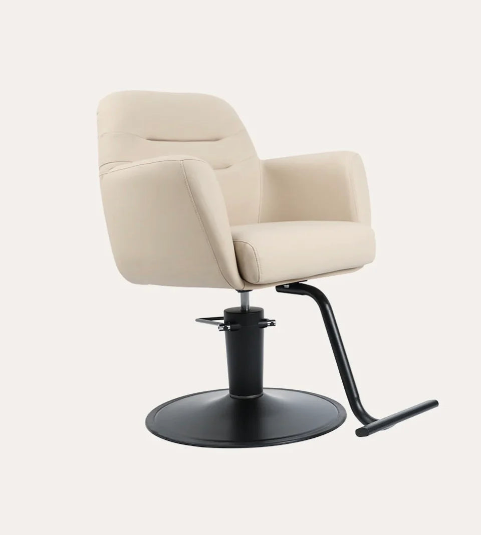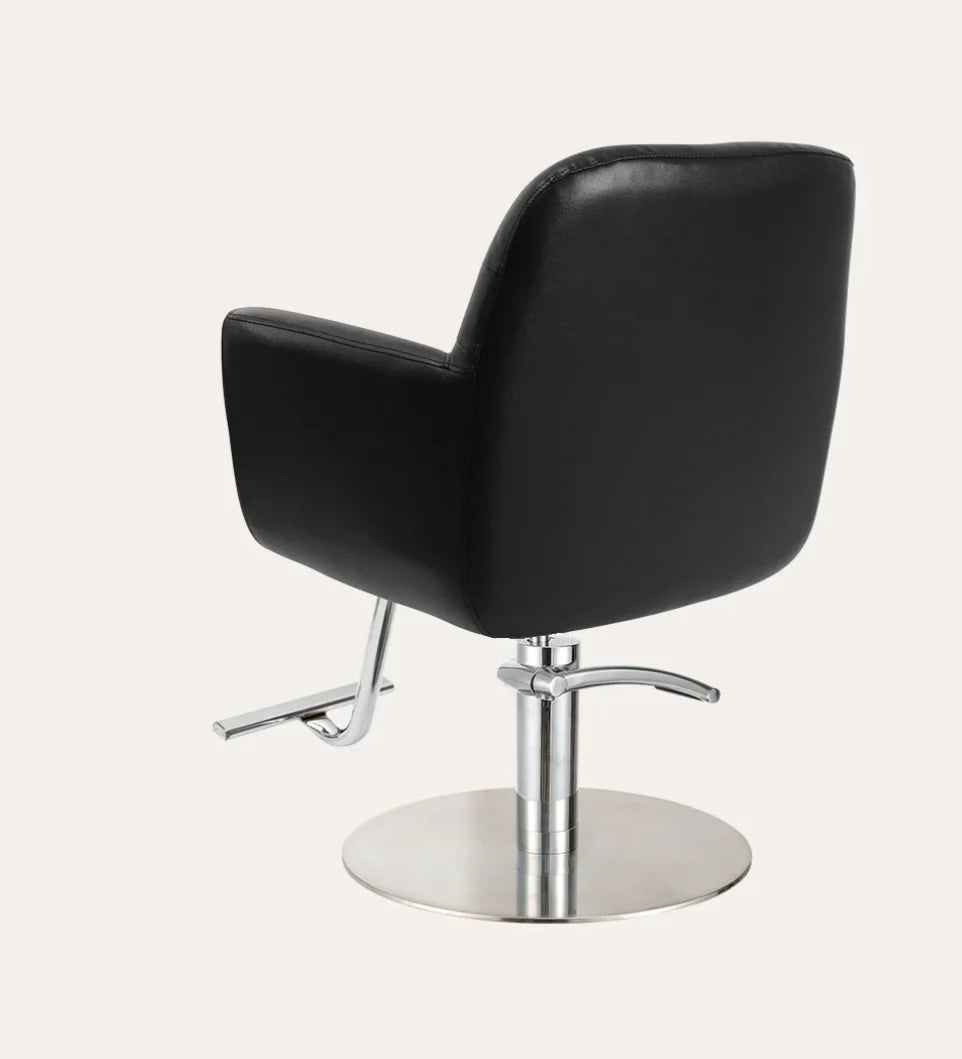 The Gemma salon chair elicits a balance of comfort and style featuring cushioned arm rests, back and seat. The soft feel and firm support of this chair creates a relaxing experience for any client.