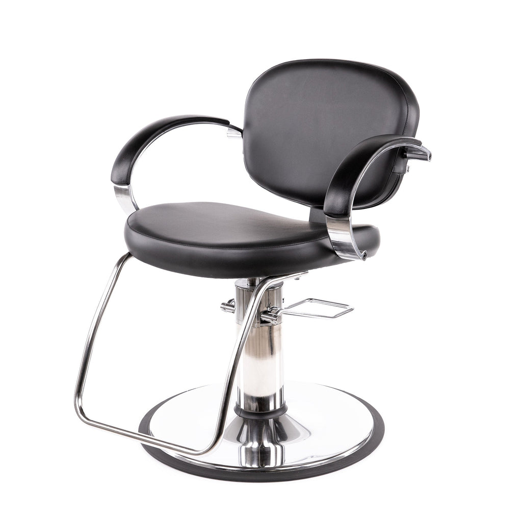 Experience the ultimate styling chair, expertly tailored and comfortably padded. The Valenti Hydraulic Styling Chair has beautiful bold cast aluminum arms capped with a durable yet soft urethane armrest. Finished in an elegant, brushed silver finish this will be your new favorite seat!