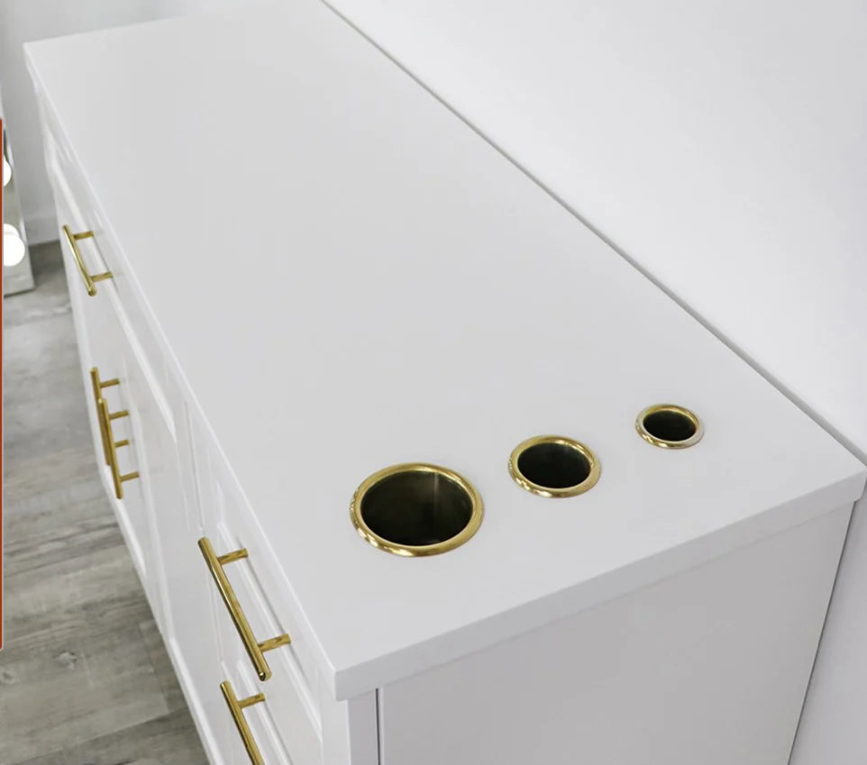 As elegant as a theatric performance, the Broadway Salon Station is a show-stopping styling station that is perfect for hair salons, barbershops, or any business that needs a touch of sophistication. Pair it with an LED mirror to create a next-level aesthetic and workspace.