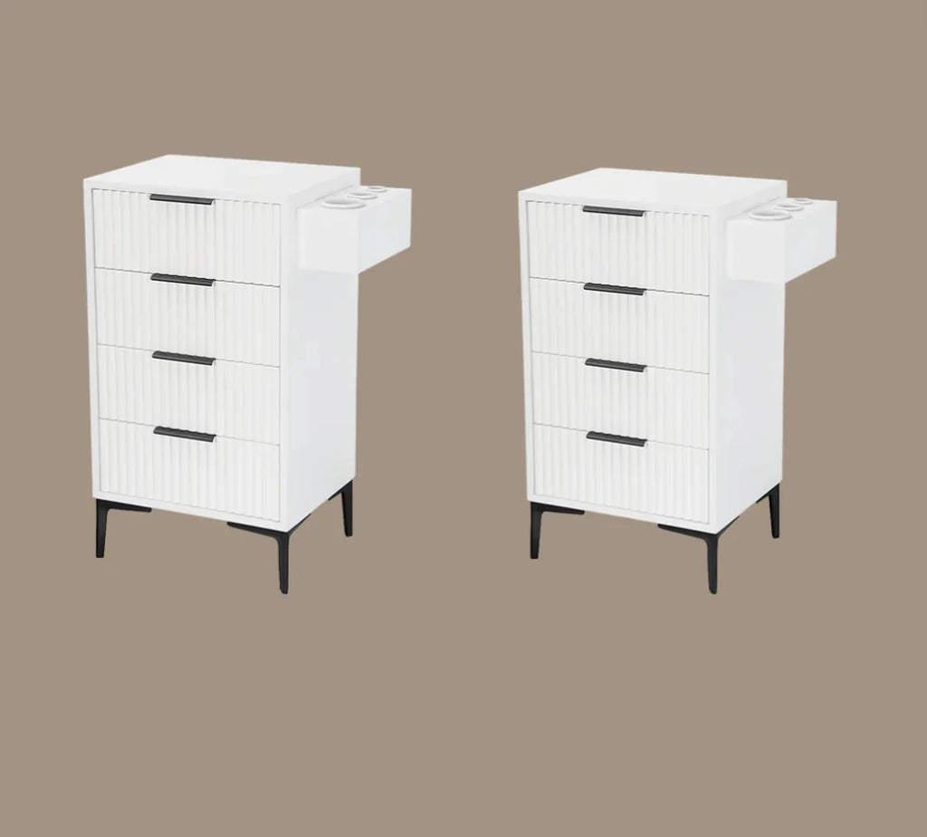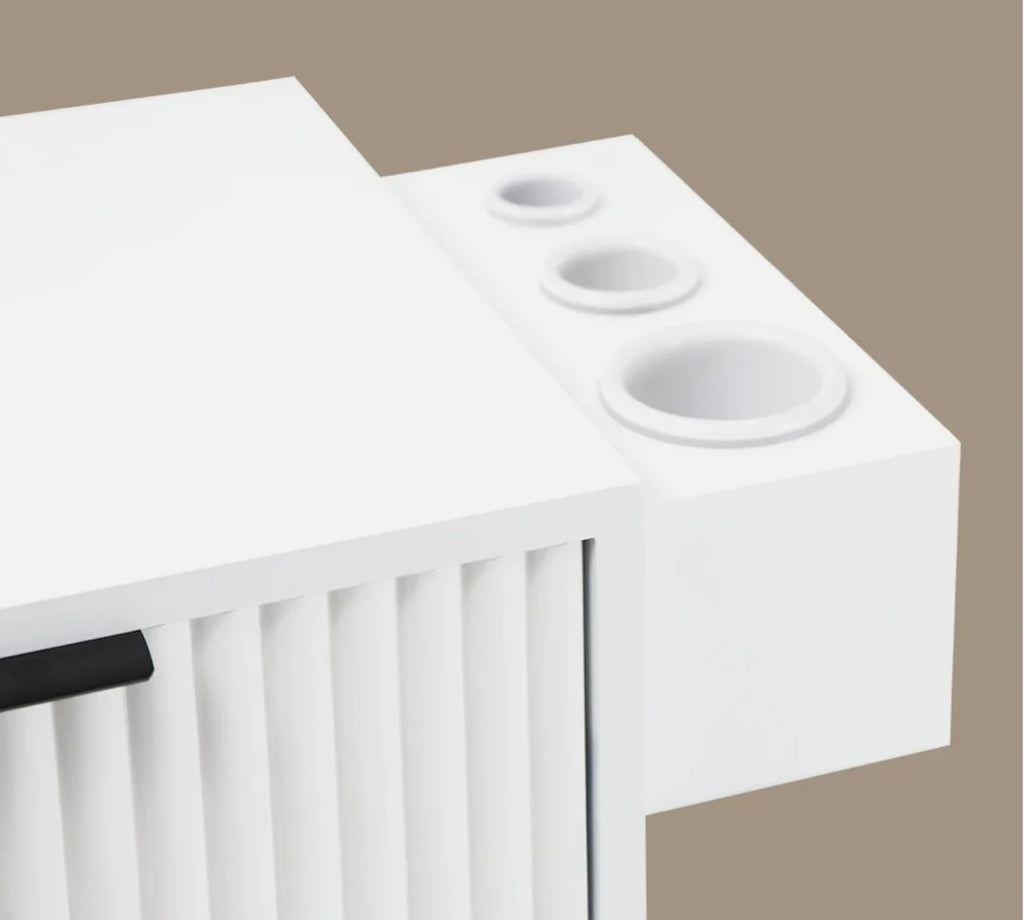 Modern design with clean lines and elegant features brings this Nouveau Station Stand to an elevated level for any shop or salon. This styling station has an interchangeable appliance holder so that it can be assembled on the left or right side - for a sleeker look, you can leave it off!