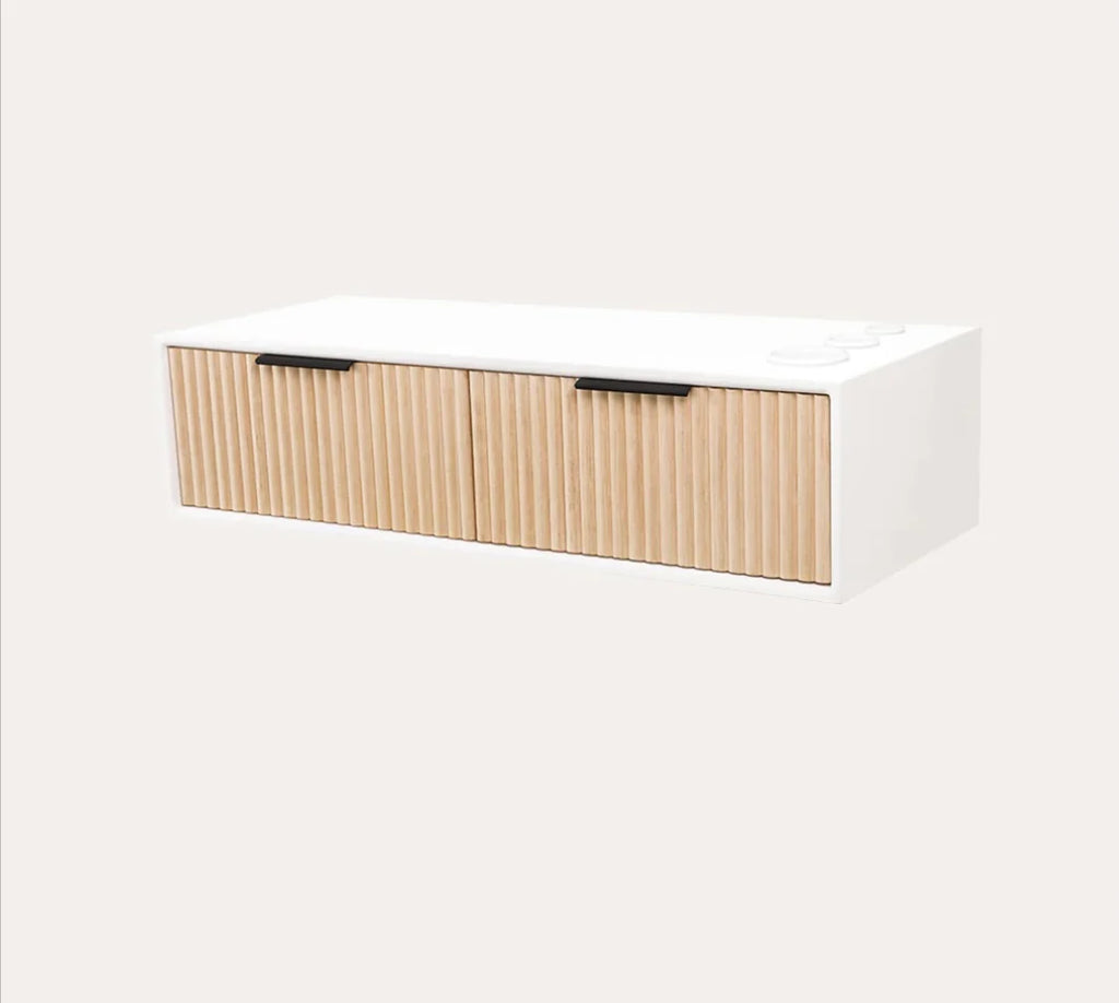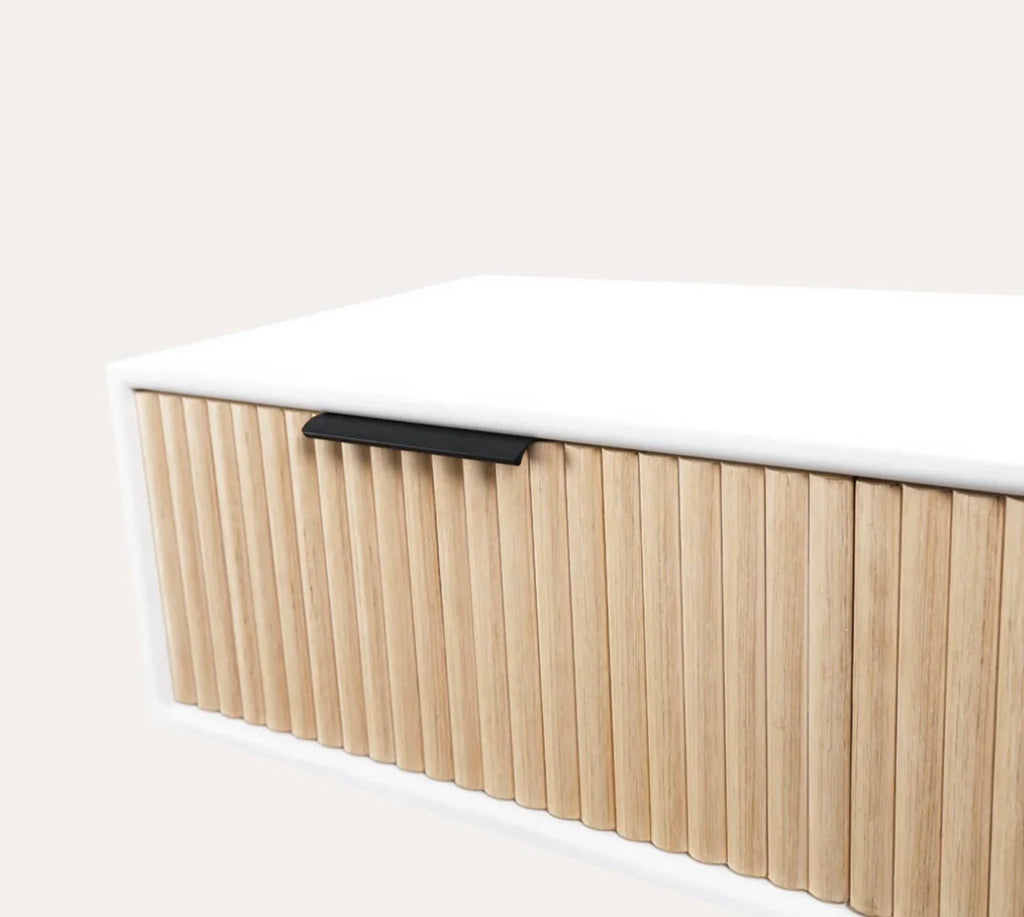 -Wood Tambour front with color choice of Natural Oak stain or Black paint