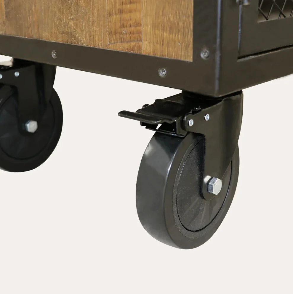 -Four heavy-duty wheels, two lockable for portability
